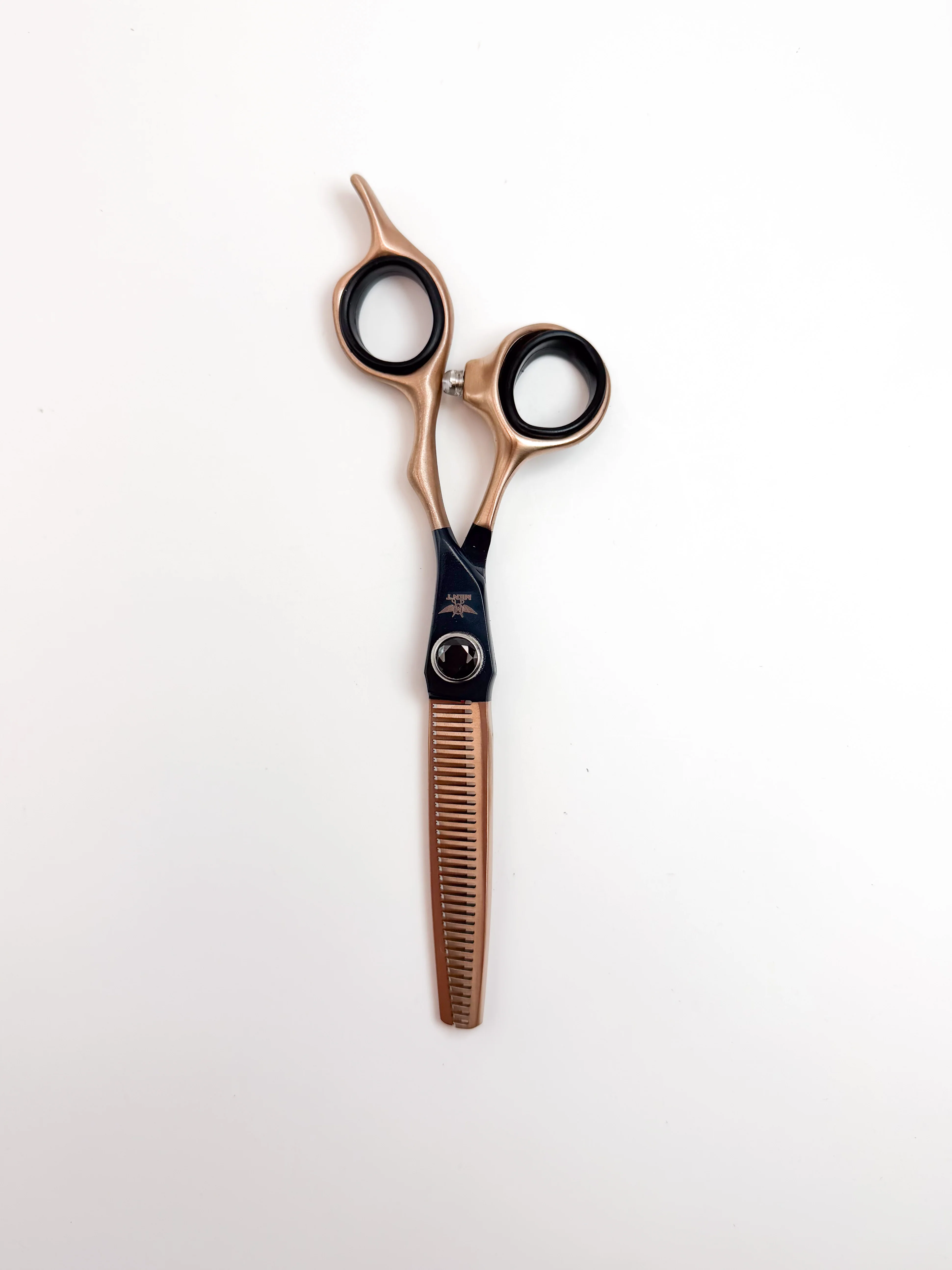 The luxury flush tension system is engineered to sit seamlessly within the body of the scissor, protecting the integrity of blade alignment while maintaining a clean, uninterrupted silhouette.